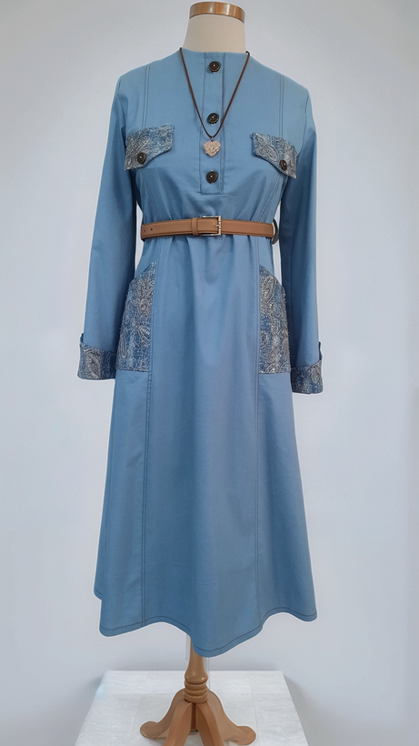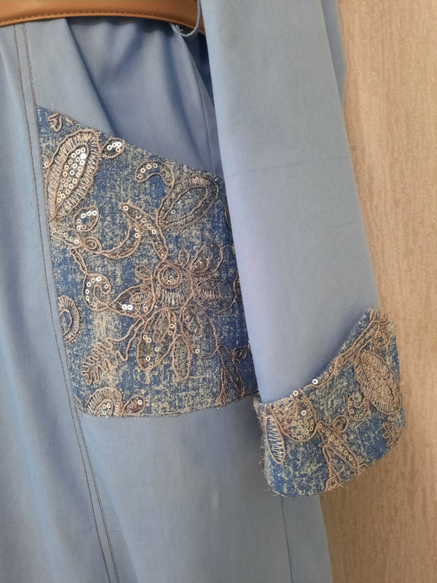 دارای دو جیب روی کار با پارچه جین شسته شده و قیطان دوزی و پولک دوزی می باشد