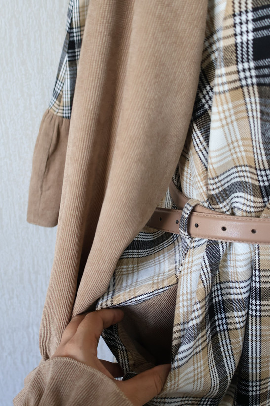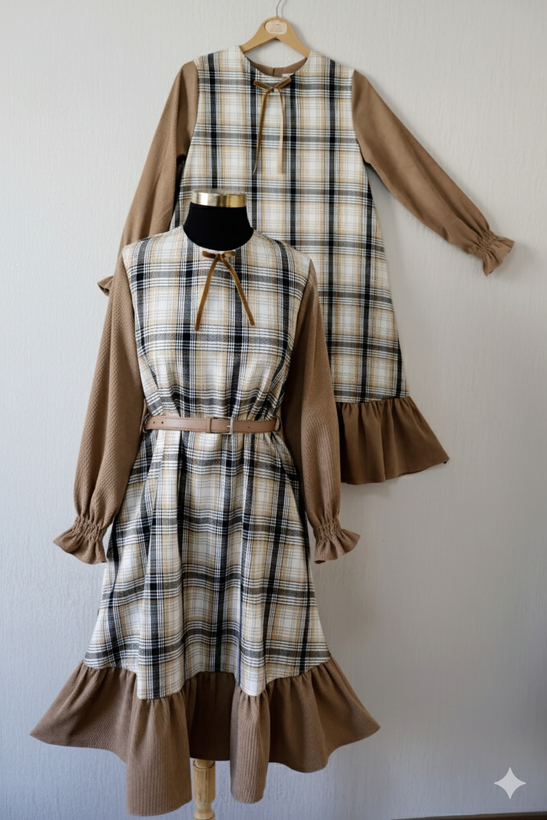 پیراهن پاییزه چارخونه کشمیر پشمی سپاهان، مهمیس، مدل"مهربان"