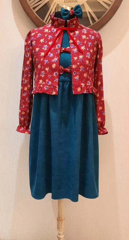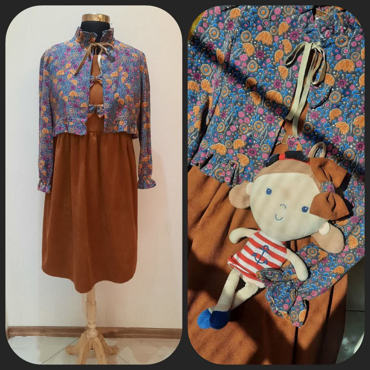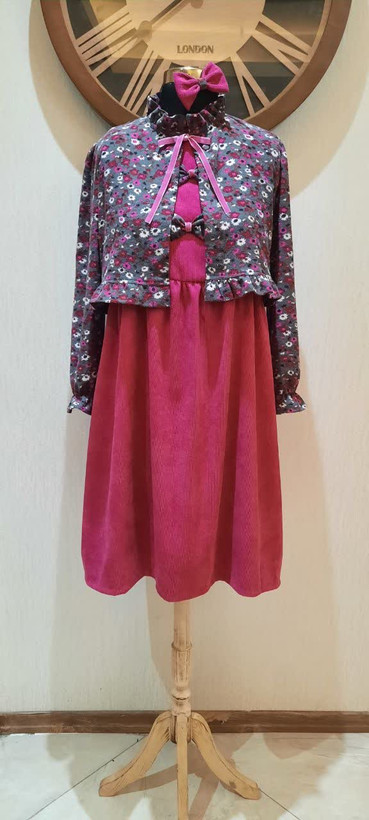 کت سارافون مخمل کبریتی و لینن کرکی دخترانه مهمیس مدل مهرگل